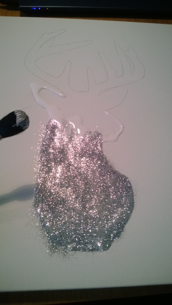 Christmas Decoration DIY: Silver sparkly reindeer on canvas