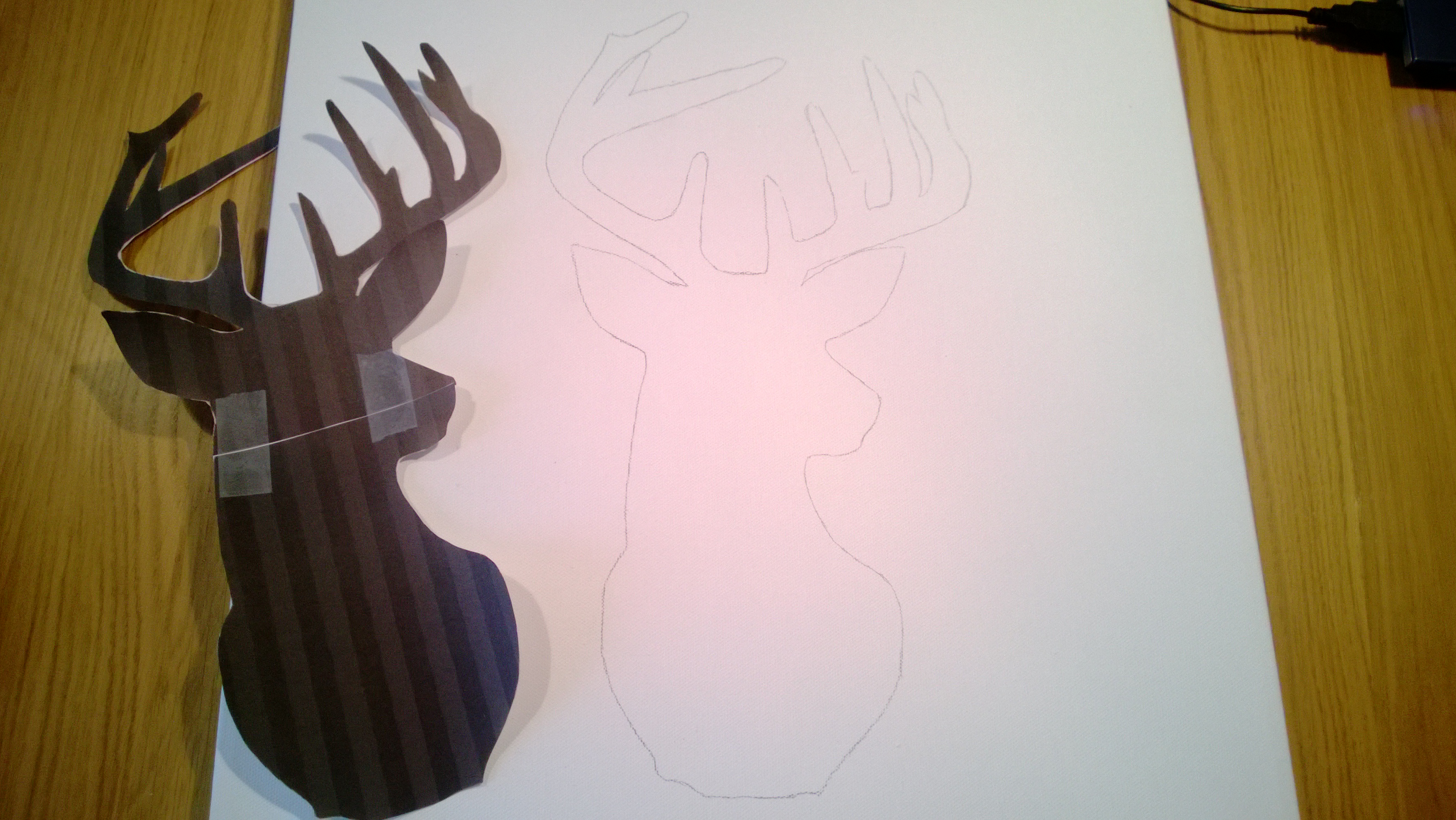 Cut out the silhouette and tape together, if necessary, to use as a stencil. Trace the shape of the deer silhouette on the canvas with a pencil.