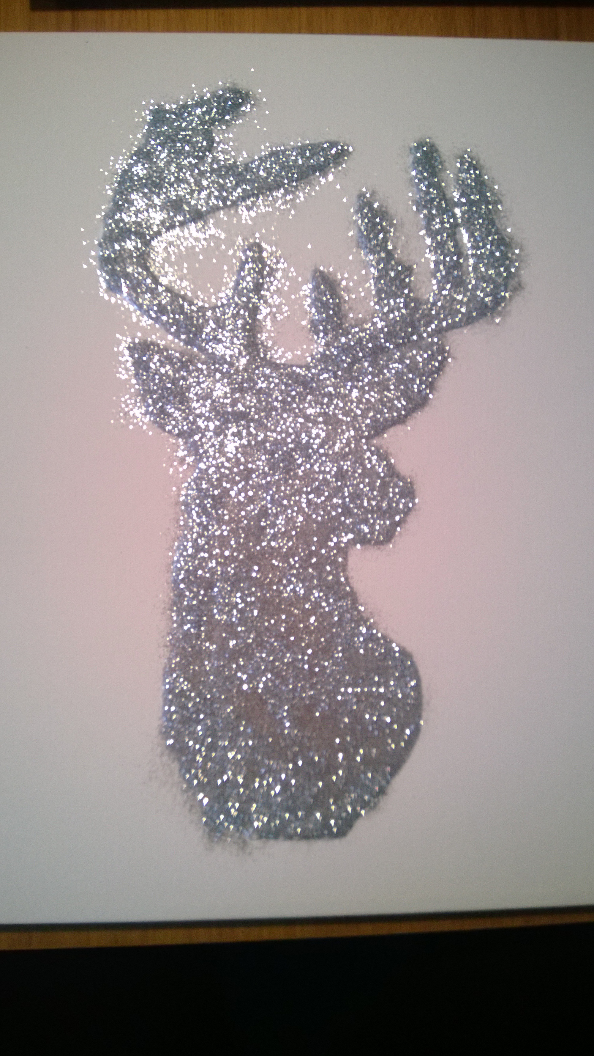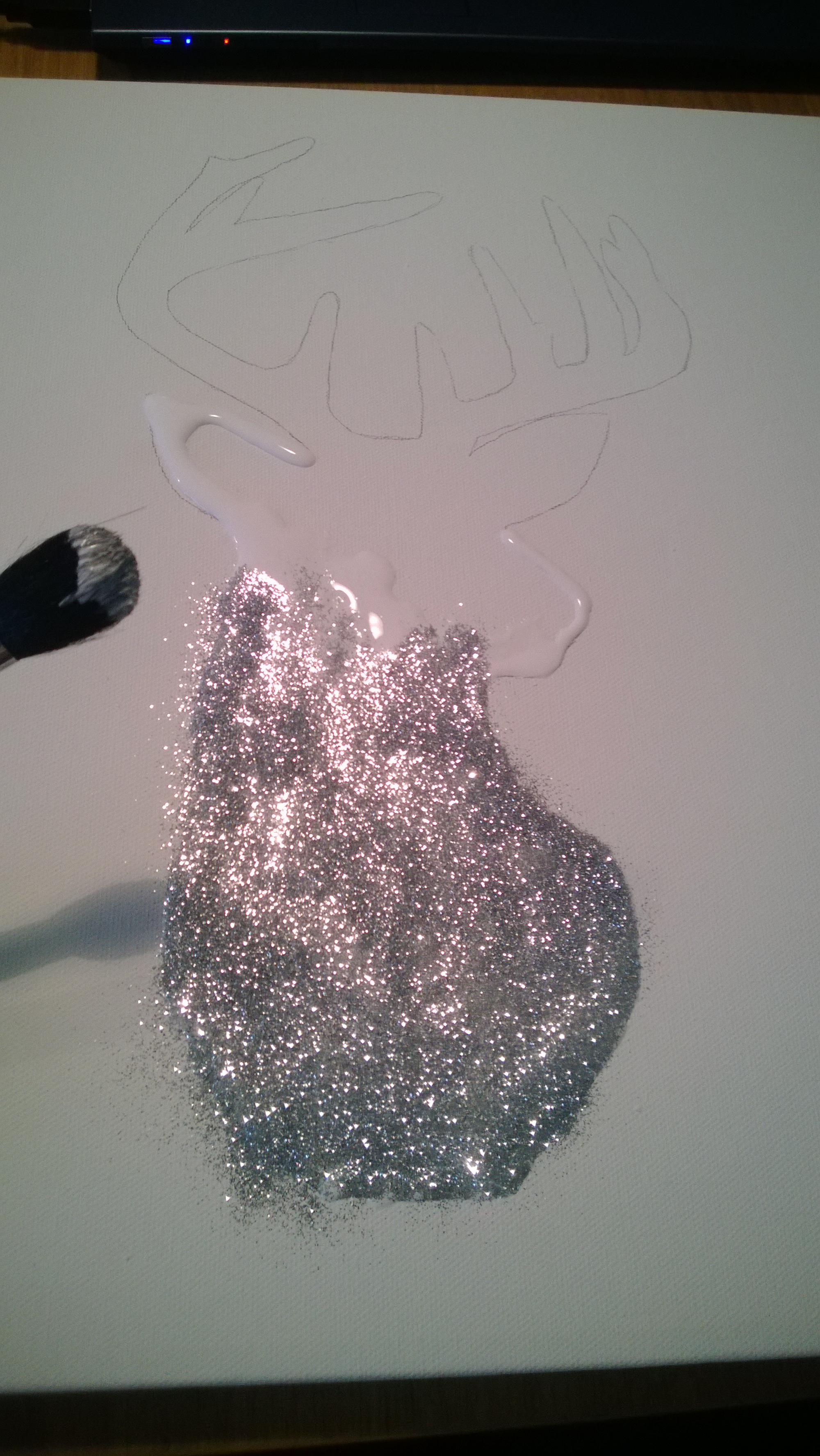 Fill in the silhouette with the glue, making sure that the pencil frame is not visible any more. Generously apply glitter.
