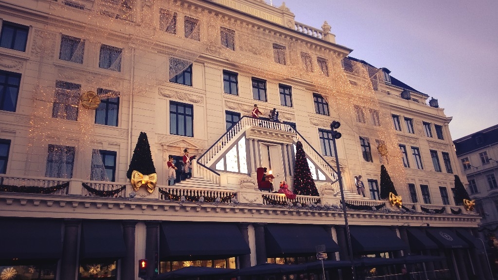 After darkness had fallen, we headed into Tivoli, which is just as amazing in its Christmas outfit as it is for Halloween. The theme this year is “Christmas in the Alps” in celebration of the oldest rollercoaster’s 100 year anniversary. I’m always amazed and touched by the beautiful light-and-music show they put on at the lake. Like last year, the music is from The Nutcracker, and the lights and water show is just so pretty. Definitely go and see it! The rest of Tivoli is just as pretty.